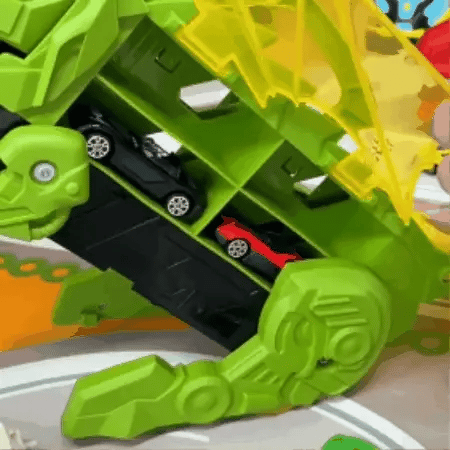 Trwały, nietoksyczny ABS, gładkie krawędzie i poręczny uchwyt. Wbudowany garaż oznacza szybkie sprzątanie i brak porozrzucanych zabawek, wszystko wraca do dino–bazy.