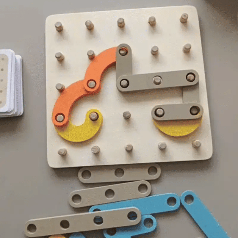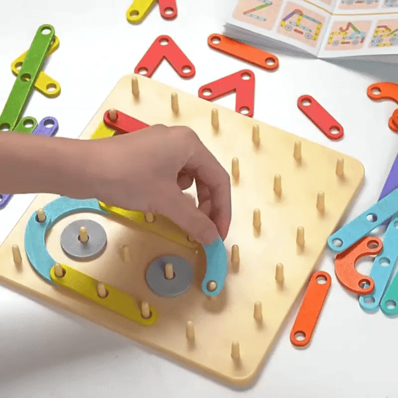 - 🖐️ Poprawia zdolności motoryczne: Chwytanie, przesuwanie i ustawianie kołków i elementów poprawia zręczność i koordynację ręka-oko.